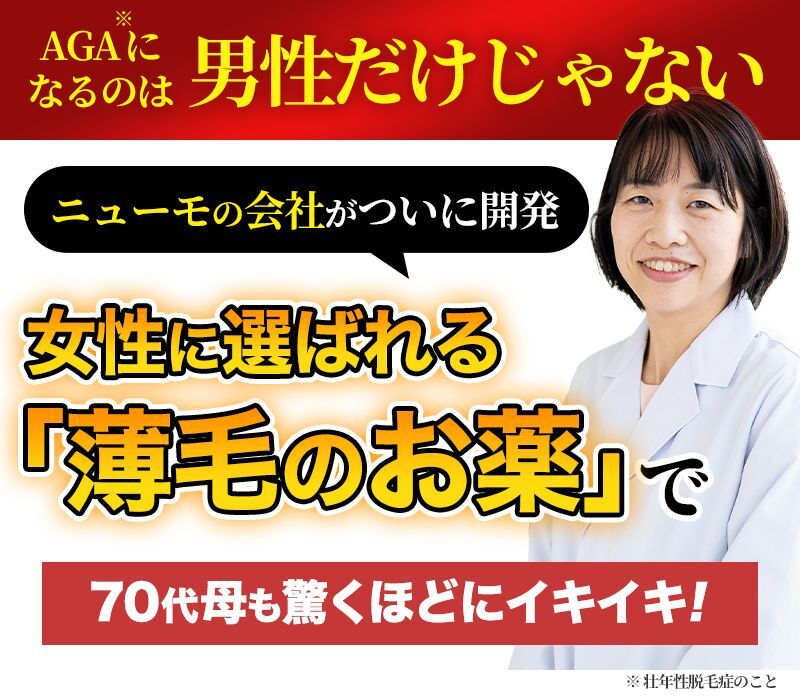 「女性のAGA※1」を簡単に治せ※2ちゃう「薄毛のお薬」。