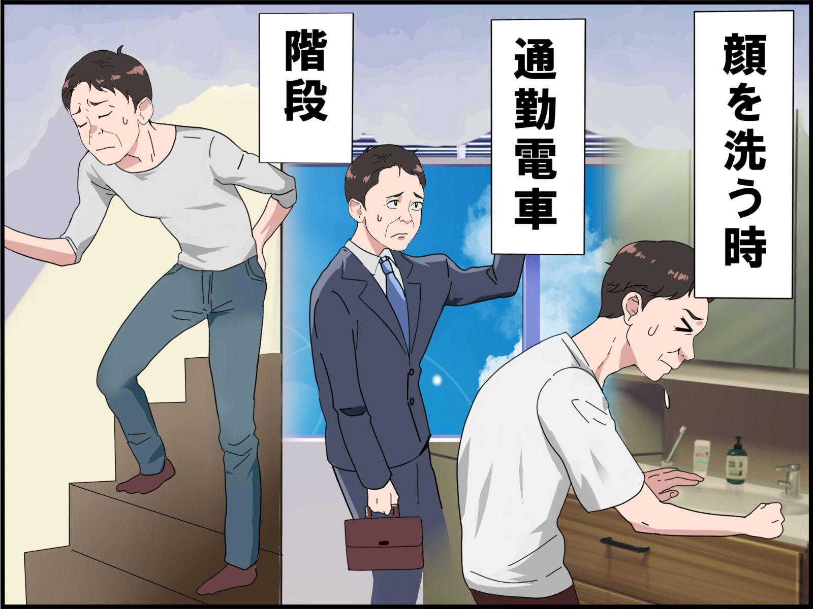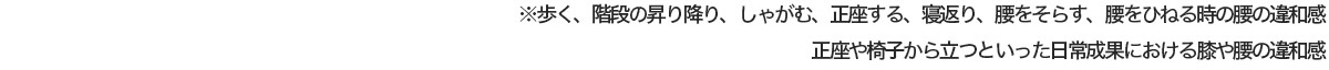 ※正座や椅子から立つといった日常生活における膝や腰の違和感、寝返り、腰を反らす、腰をひねる時の腰の違和感のこと