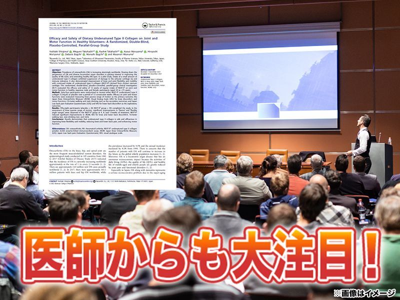 ※非変性Ⅱ型コラーゲン(3.2㎎)は日本で唯一、ヒザの可動性、ヒザと腰の違和感の軽減、歩行のサポート機能を有した軟骨由来の機能性関与成分(TPC マーケティングリサーチ㈱調べ 2024年 3月28日時点)